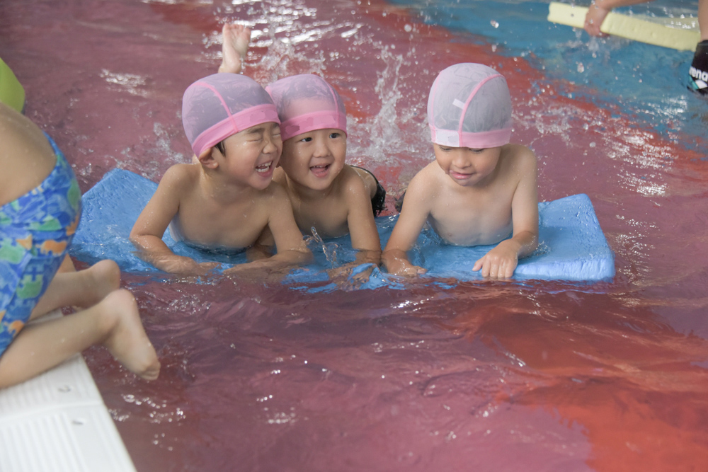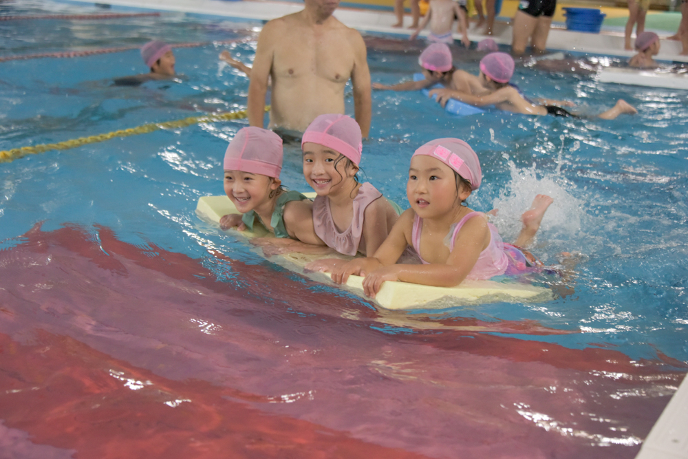 水が得意な子、少し苦手な子と様々ですが、クラスの皆と入るプールは楽しそうです。 顔がつけれるお友達は「見て見てー!」と披露してくれます☆