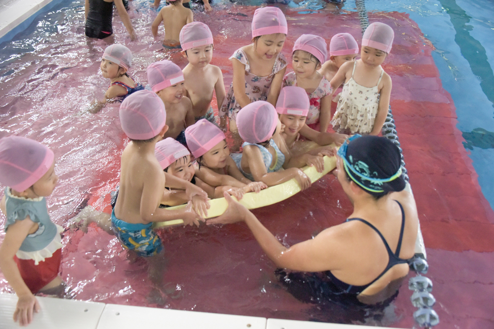 今日は年少組さんの水泳指導の日です。 暑かったので、みんな気持ちよさそうに泳いでいました☆