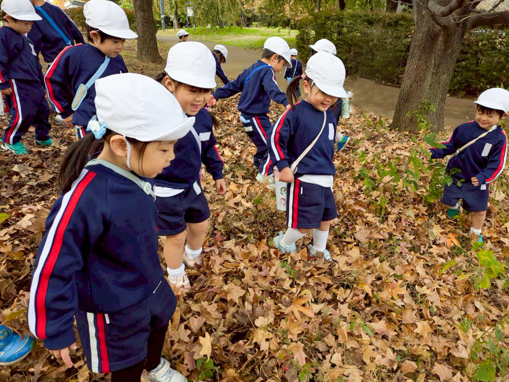落ち葉が目立つ季節になってきましたね。 幼稚園の園庭にもたくさんの落ち葉があるので、子どもたちはその落ち葉をさまざまなものに見立てて、楽しそうに遊んでいます☆