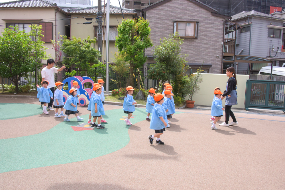 年中さん、年長さんも外遊びのお約束を再確認 来週から1日保育が始まります★