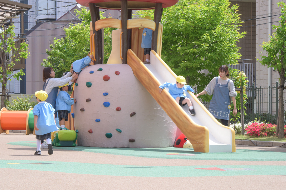 心地よい気温の中、子どもたちは元気に園庭あそびを楽しんでいます。 笑い声が園庭いっぱいに広がっています☆