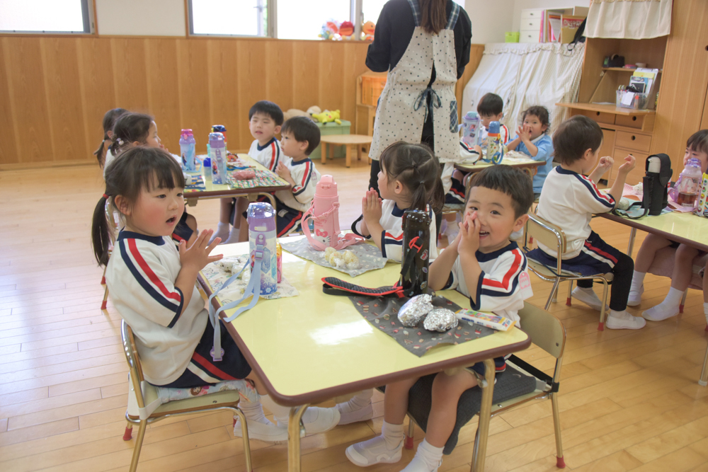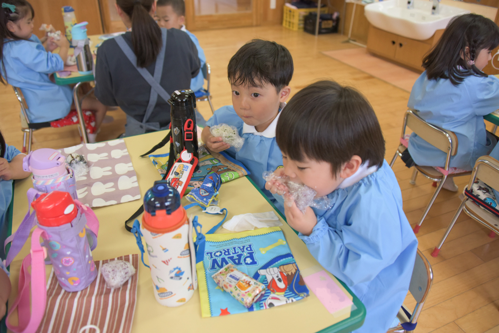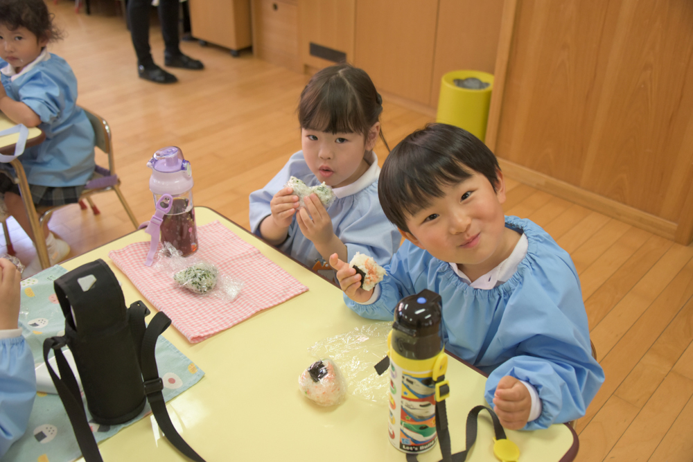 おうちの方が作ったおにぎりを、大きなお口でうれしそうにほおばる子どもたちの姿が見られます。 準備から片付けまでも頑張っていますよ☆