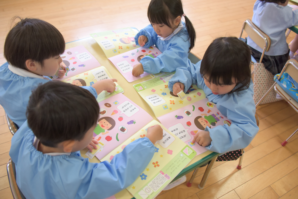 お当番をきめて、ワークを配ったり、いただきますの挨拶をしたり、色々な当番に挑戦中です♪