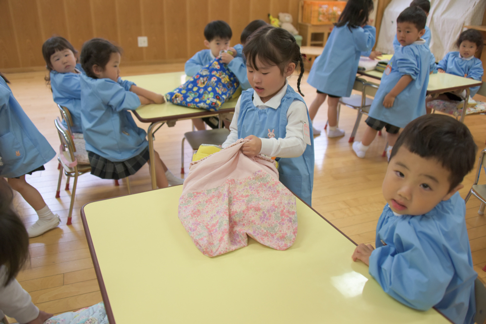 年少組さんも少しずつ、手紙を自分で折ったり、持ち帰りの遊び着を畳んだりと、身の回りのことを頑張っています。 最初は難しくても、繰り返し取り組む中で少しずつ出来るようになり、子ども達の成長を感じます★