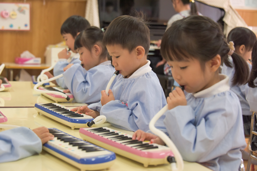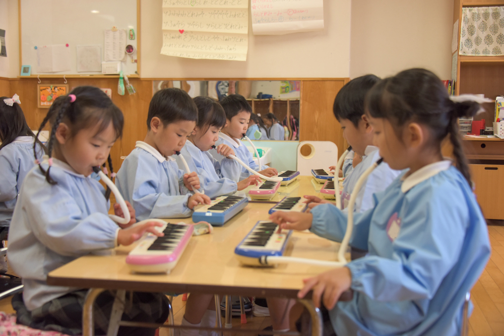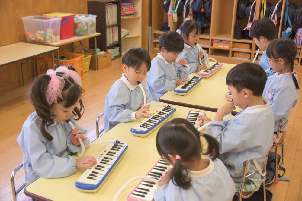 園庭でいっぱい遊んで、部屋に戻ってメロディオンをがんばって。 やるときはやる、遊ぶときは遊ぶ!けじめをつけて頑張っています♪