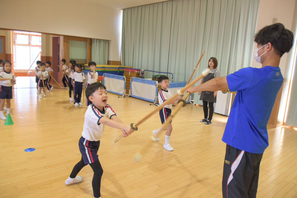 ホールから元気なかけ声が聞こえてきたので覗いてみると、子どもたちが剣道に挑戦していました。 これからもいろんなことに触れながら、楽しい経験をたくさん重ねていってほしいです☆