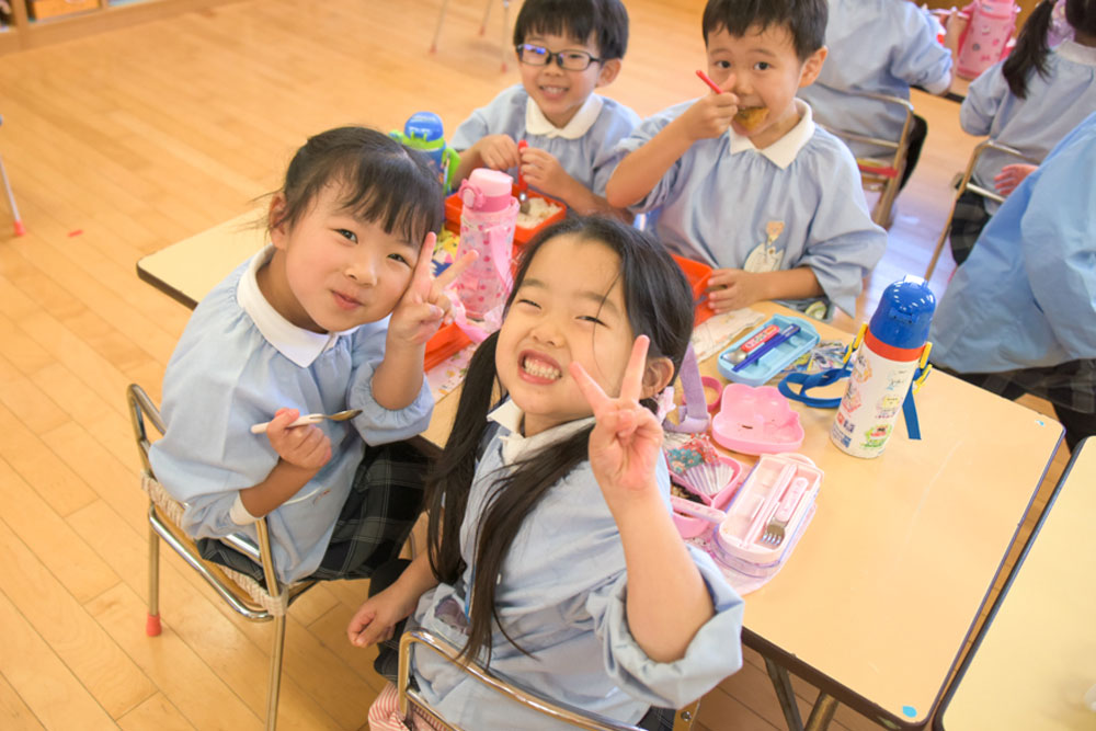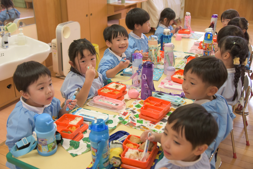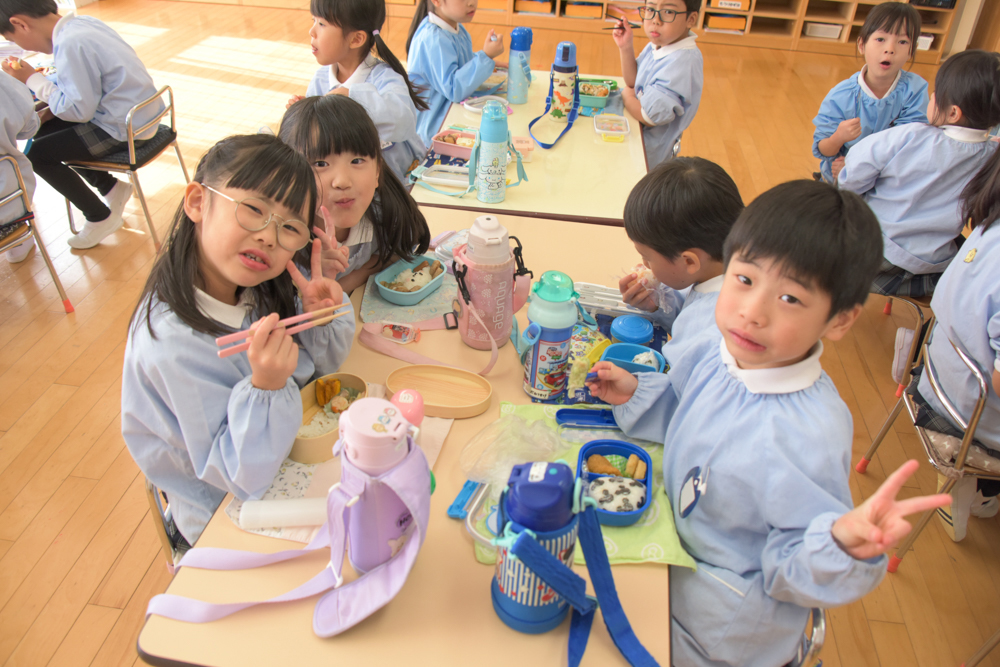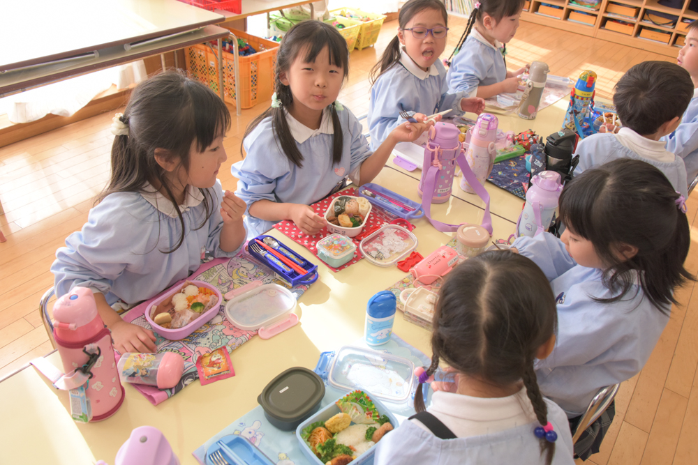 給食もお弁当の子も、元気よく「いただきまーす!」