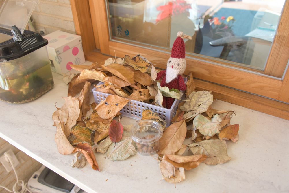 園庭の落ち葉を使ってごっこ遊びをしたり。 玄関にも気づいたら沢山の落ち葉が飾られていました☆